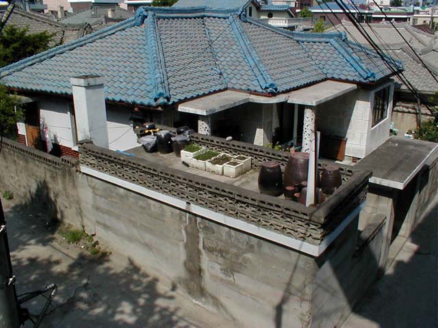 Koreans still make their own in traditional pots. The photo shows a typical house in Kangnung, with